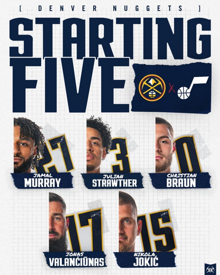 3月3日讯 掘金客场挑战爵士,赛前首发阵容出炉,本场比赛卡梅隆·约翰逊缺阵,掘金摆出了双塔首发: